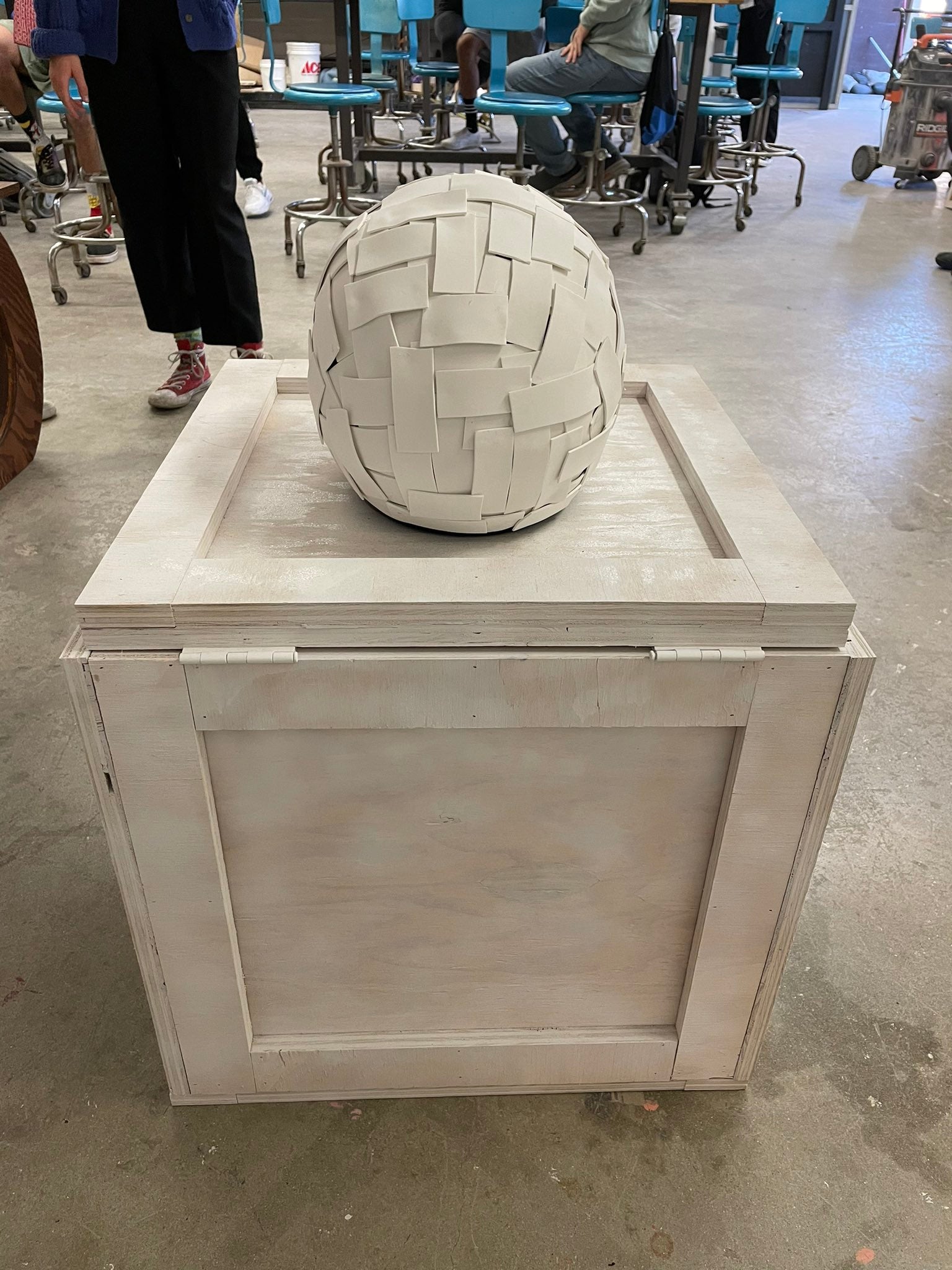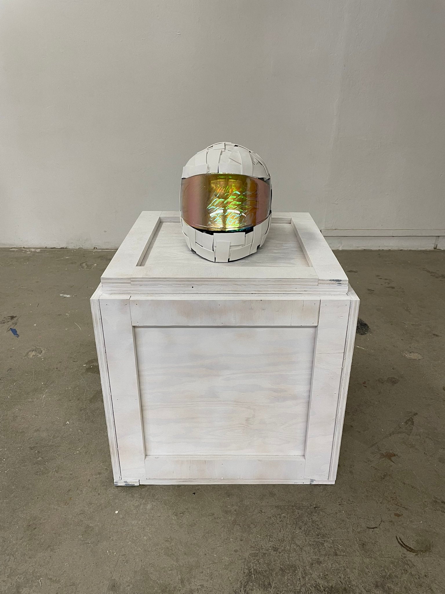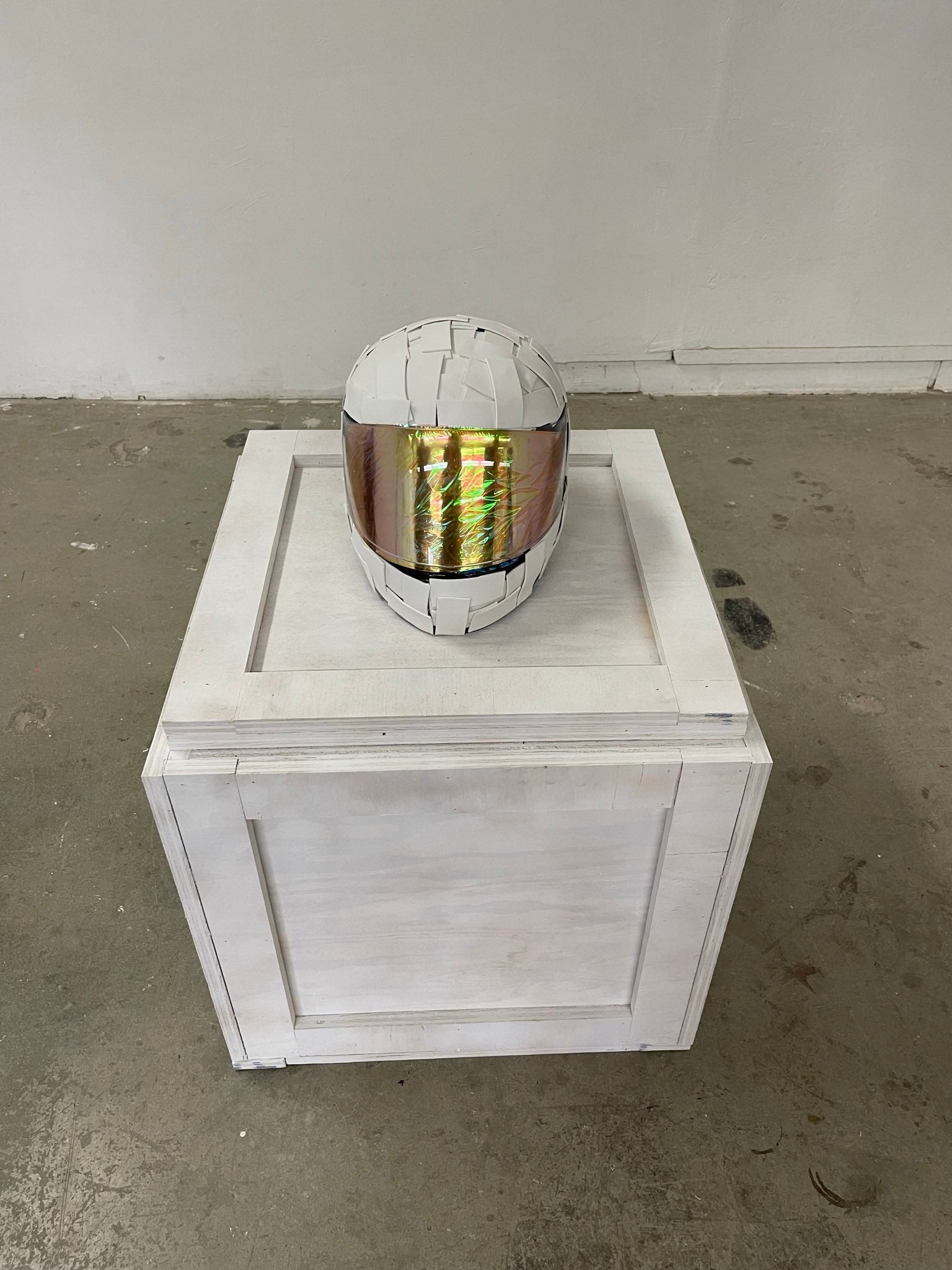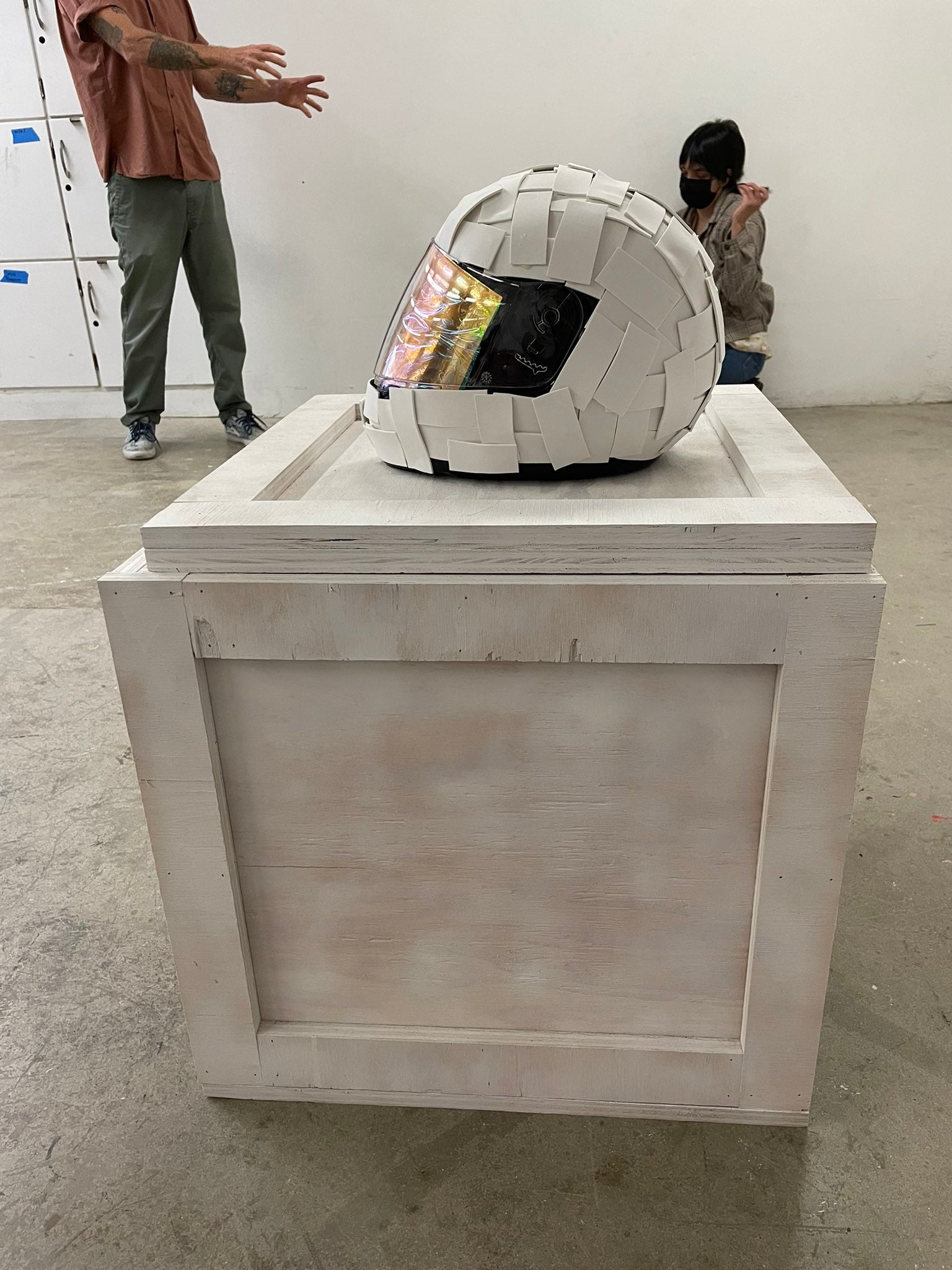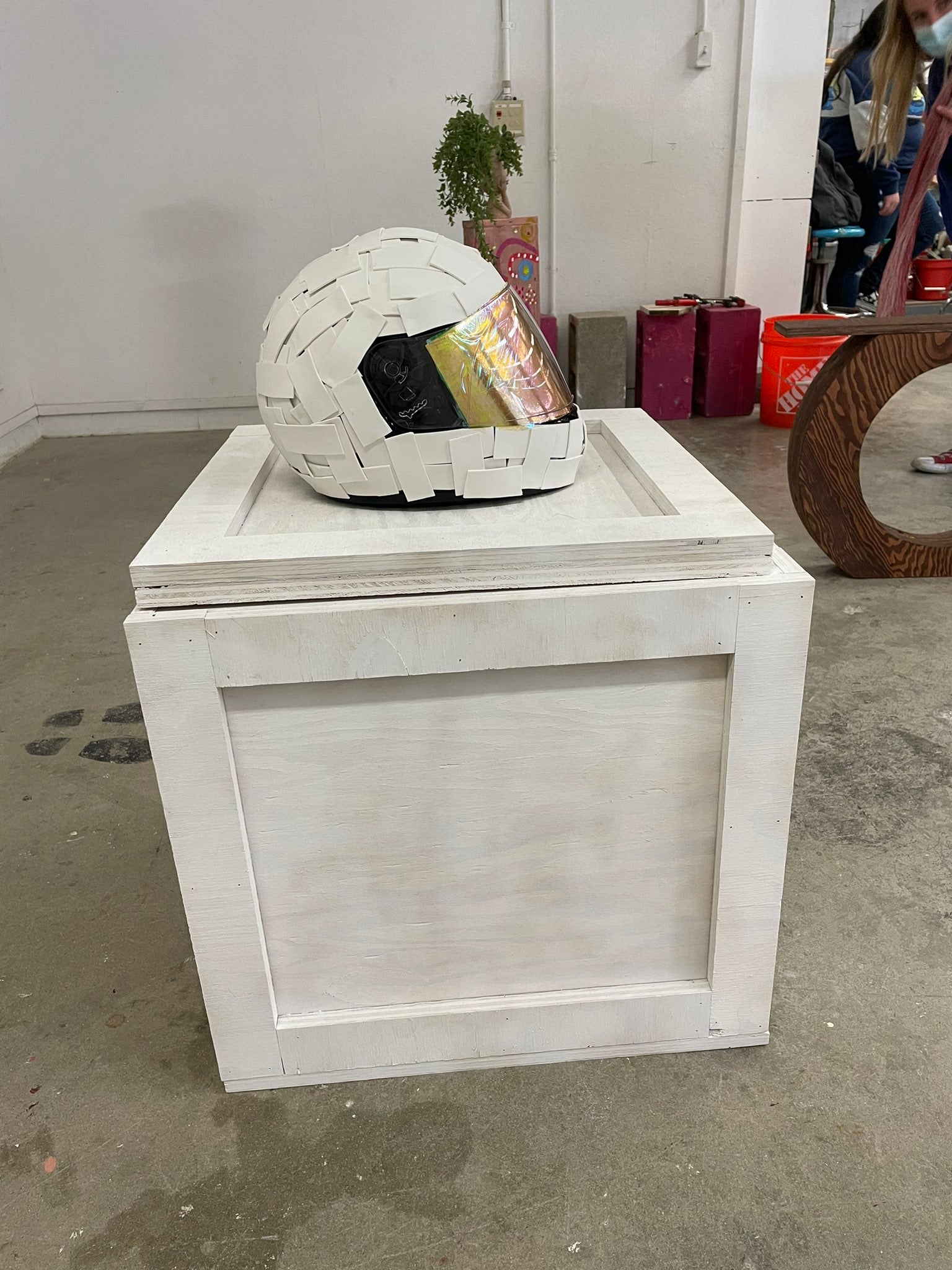A functional cargo box constructed and painted by me with an additional decorated motorcycle helmet.